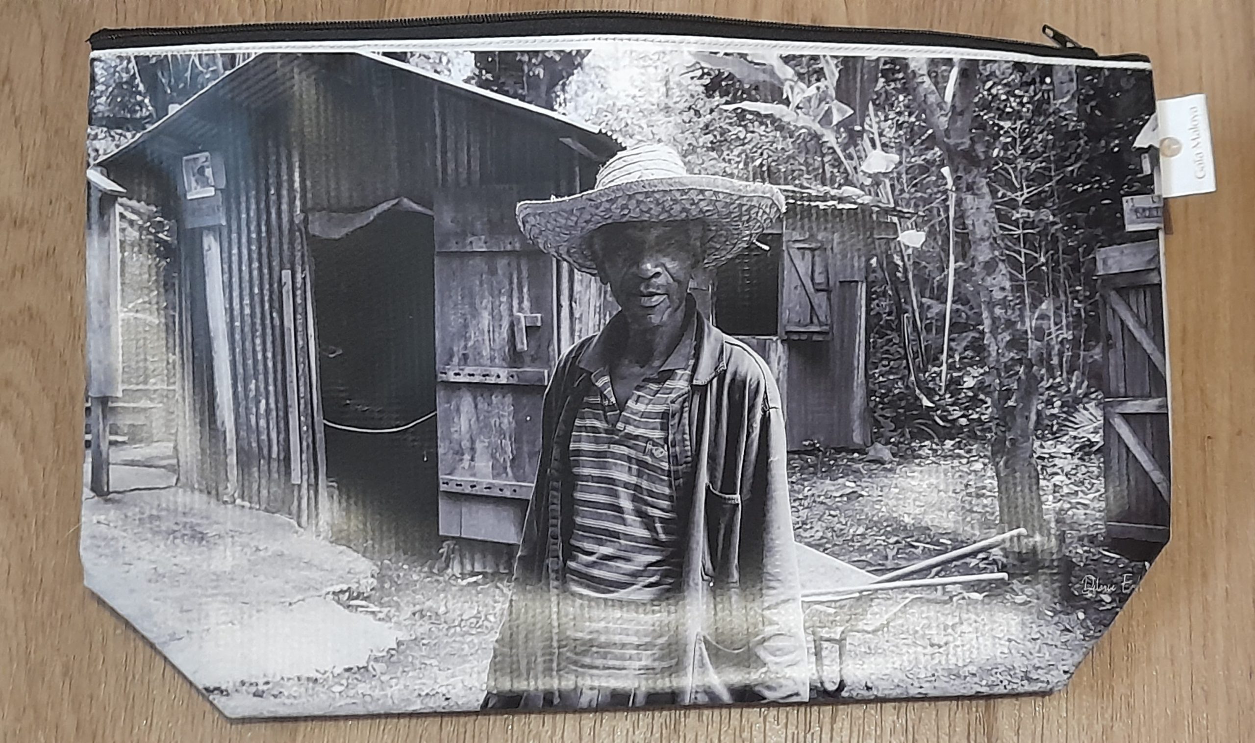 Découvrez notre magnifique trousse de toilette artisanale Emilie de l’île de la Réunion, confectionnée avec soin à la main. La trousse est agrémentée d’un incroyable portrait d’un gramoun en noir et blanc signé par Emilie Delarue. Pratique et esthétique, c’est l’accessoire parfait pour une vie quotidienne organisée et stylée.