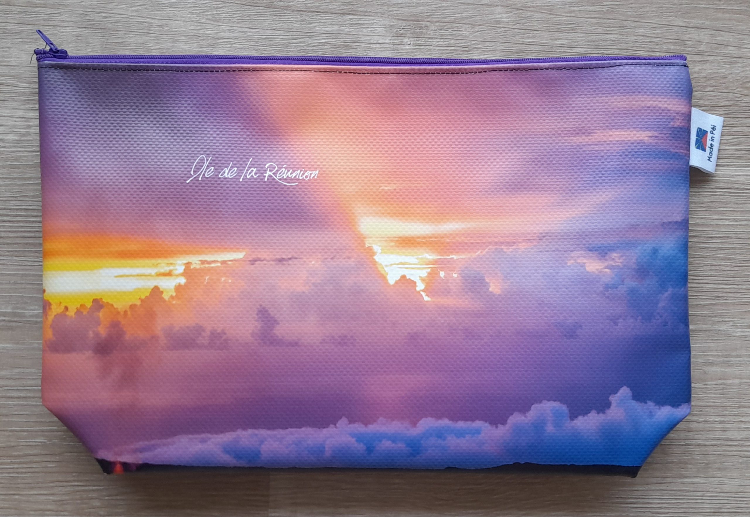 Découvrez notre magnifique trousse de toilette artisanale Emilie de l’île de la Réunion, confectionnée avec soin à la main. La trousse est agrémentée d’une incroyable photo au coucher de soleil du volcan en éruption. Pratique et esthétique, c’est l’accessoire parfait pour une vie quotidienne organisée et stylée.