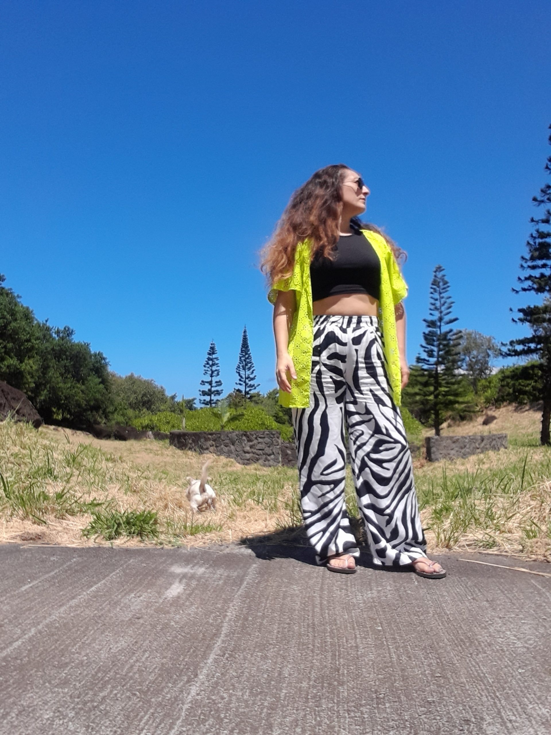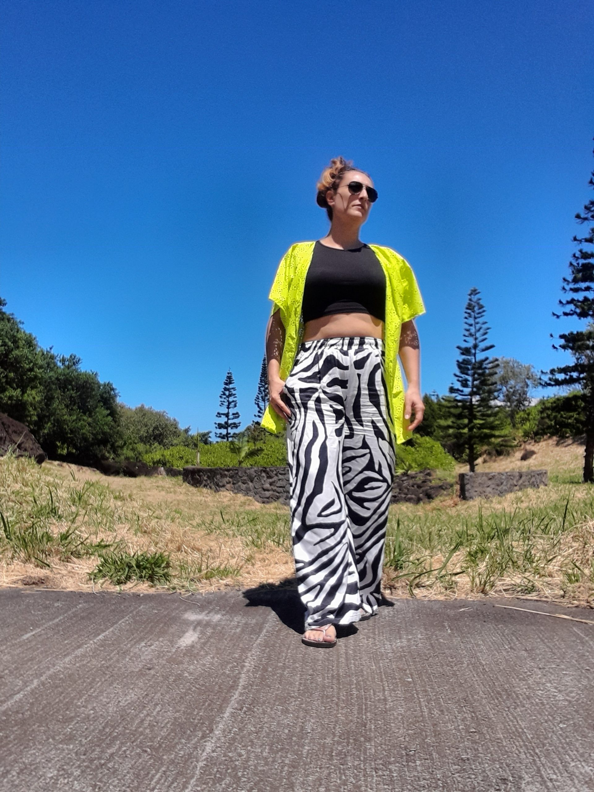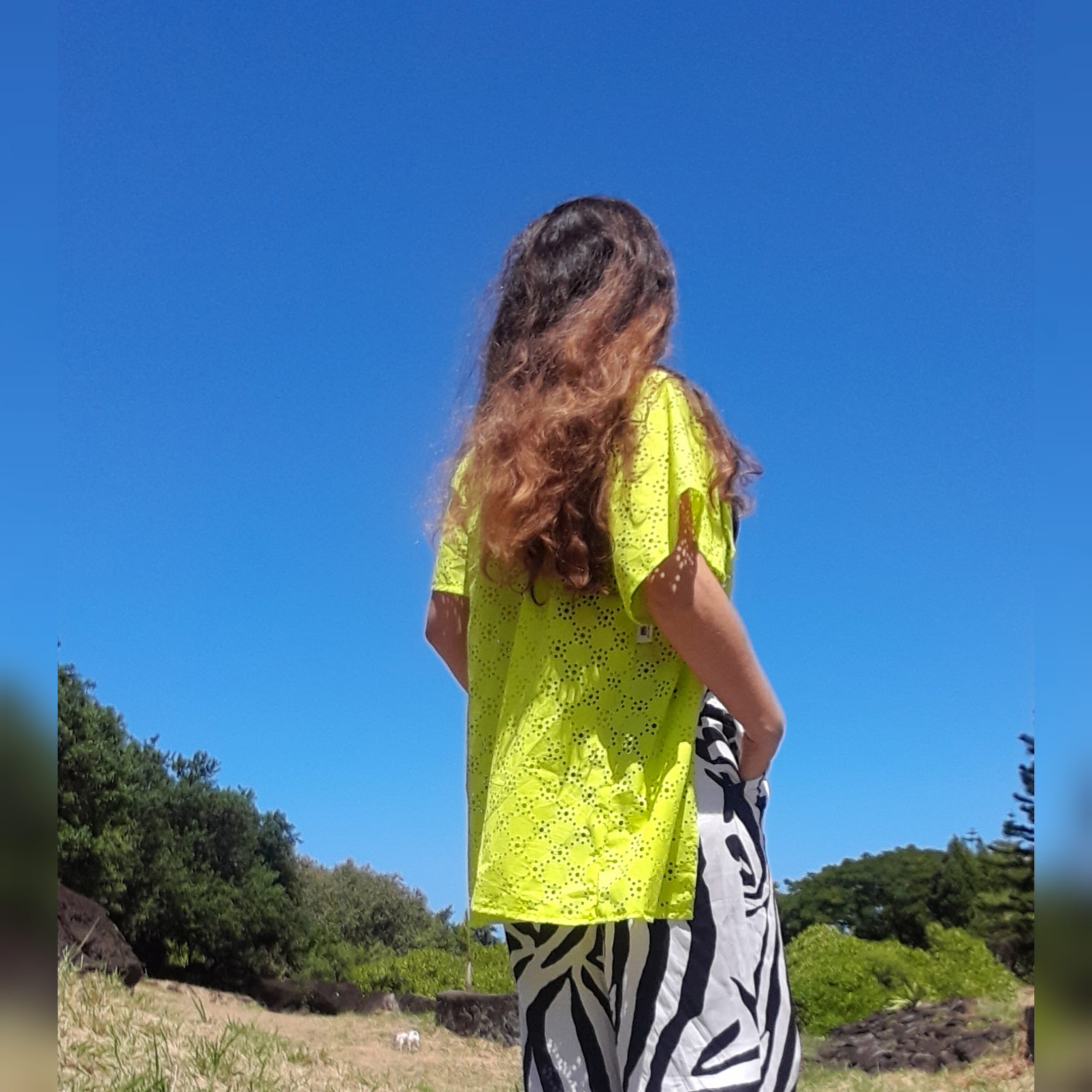 Ce kimono court, taille double M, offre un mélange de style et de confort. Fabriqué de manière artisanale à La Réunion, il envoi du lourd avec ce jaune fluo bien flashy. Ajoutez une touche tendance et pepsy à votre tenues. Idéal pour une élégance décontractée avec une touche artisanale unique.