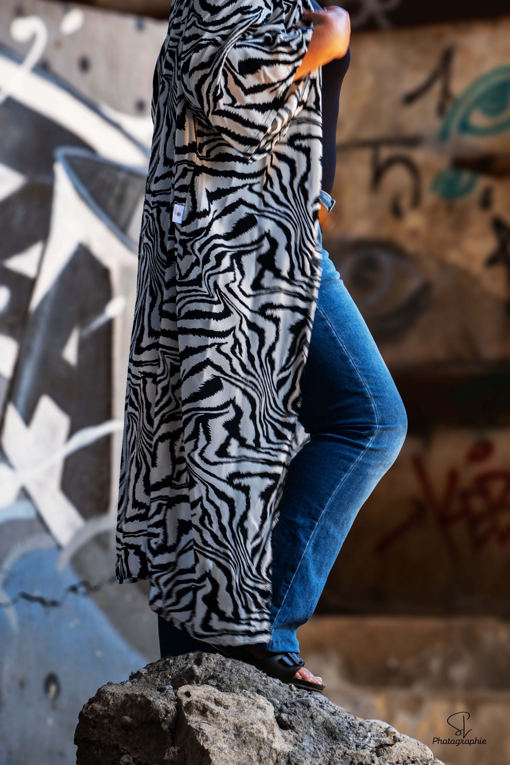 Découvrez l’élégance intemporelle avec notre kimono long fabriqué à la main à La Réunion. Les manches longues ajoutent une touche de sophistication, tandis que la viscose offre un confort luxueux. L’imprimé zèbre unique donne une allure audacieuse et tendance, faisant de ce kimono un choix parfait pour toutes les occasions.