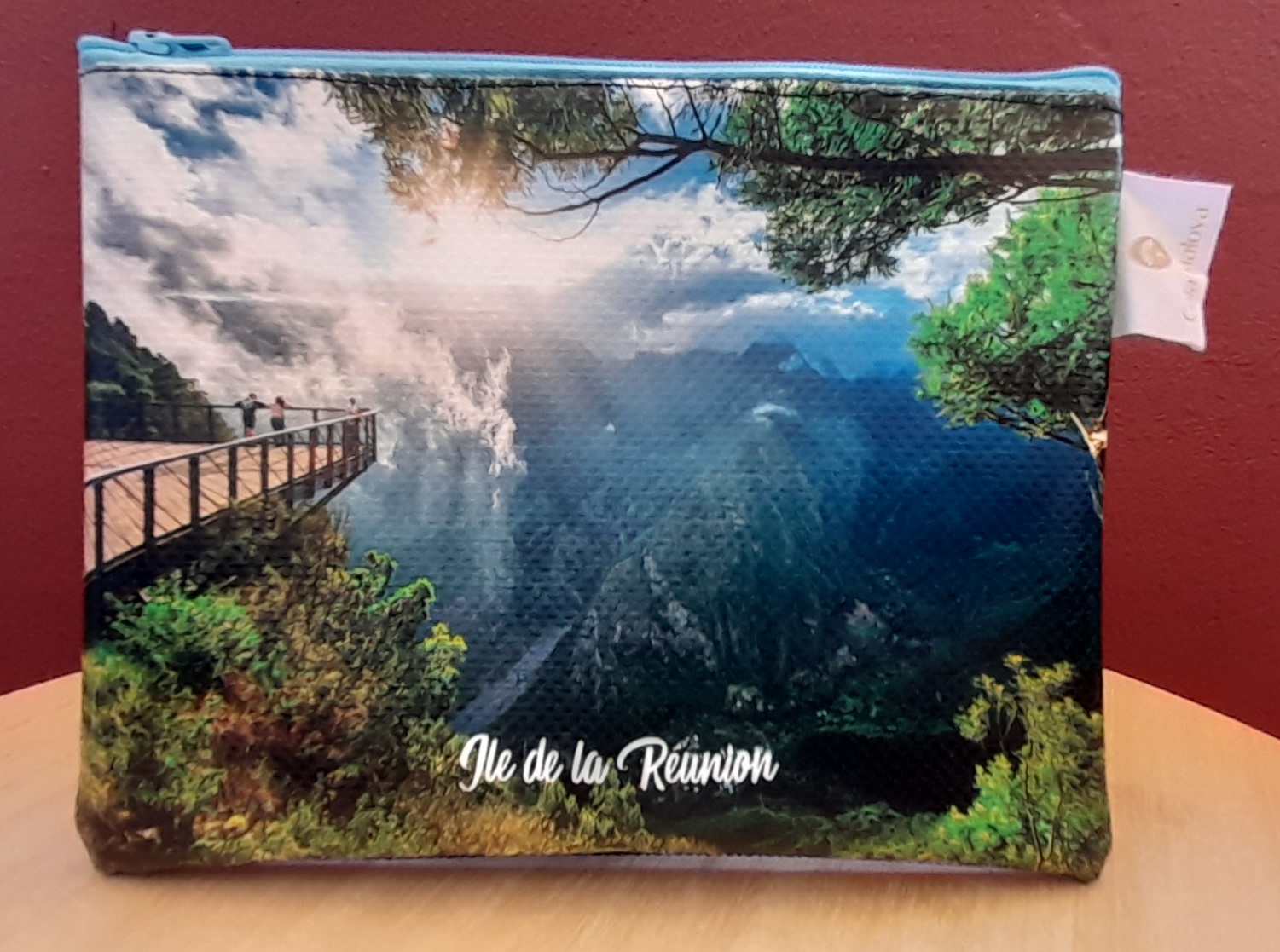 Découvrez notre pochette artisanale Maily avec son incroyable point de vue vertigineux de Grand Bassin, confectionnée avec amour à la Réunion.
