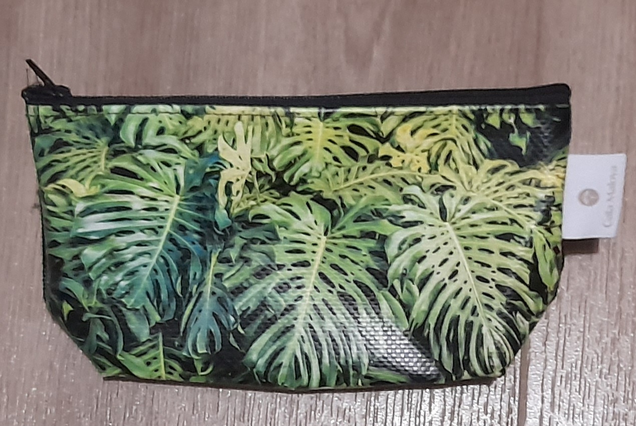 Découvrez notre trousse artisanale Calie avec sa sublime photo de monsteras, confectionnée avec amour à la Réunion.