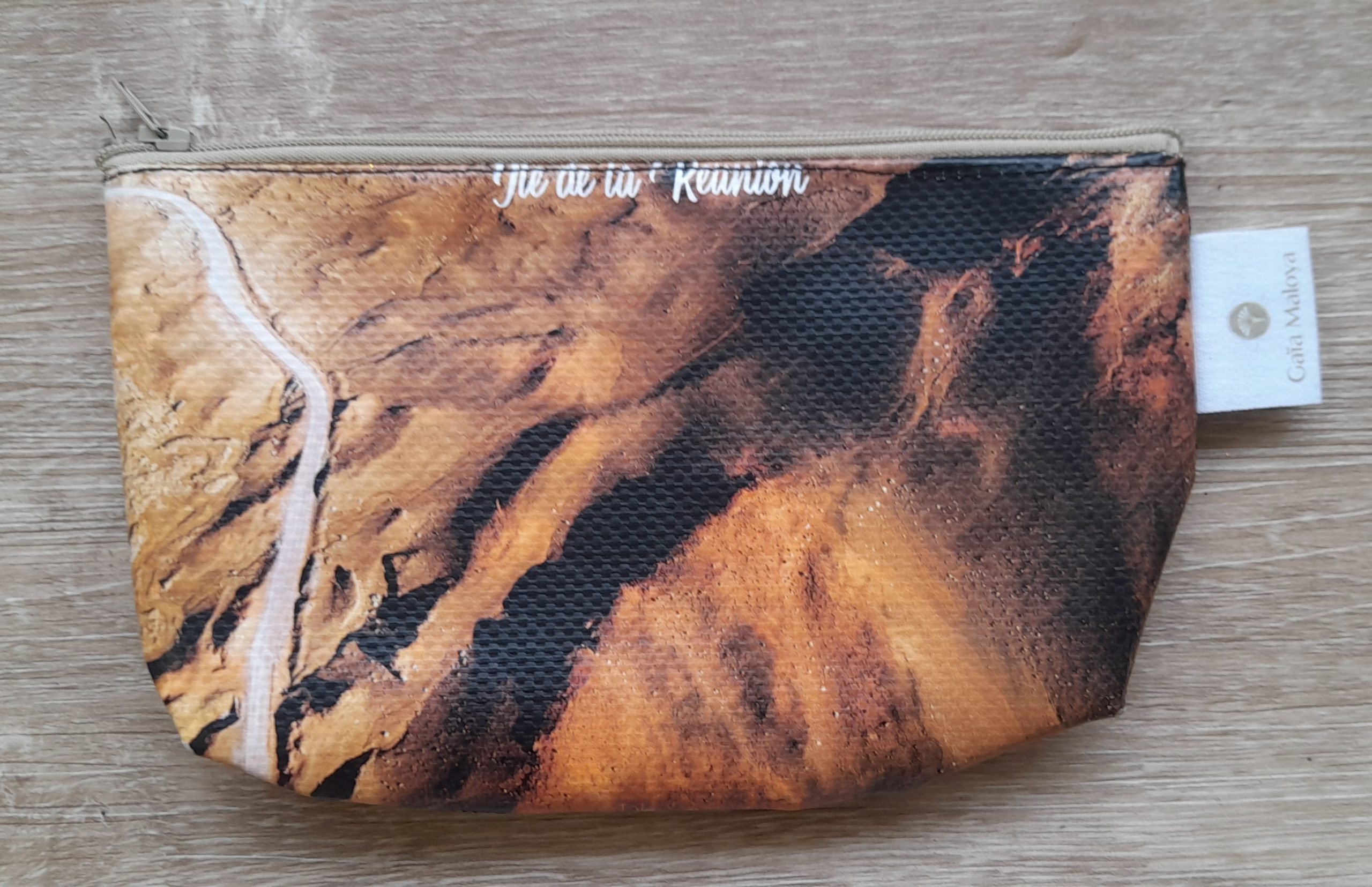 Découvrez notre trousse artisanale Calie avec sa sublime photo de la mythique route de la Plaine des Sables et son paysage totalement martien, confectionnée avec amour à la Réunion.