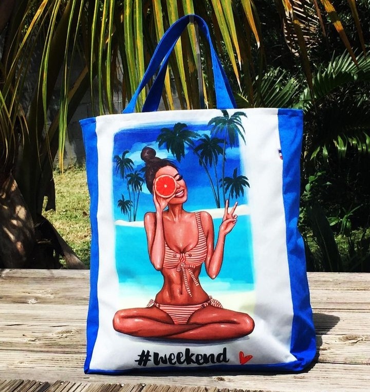 Description : Ce sac cabas unique, fabriqué à la main avec du textile recyclé, est non seulement un choix écologique mais aussi une déclaration de style. L’impression vibrante d’une femme se détendant sous des palmiers évoque une ambiance de weekend détendue. Les couleurs vives et le design artistique font de ce sac un accessoire idéal pour ajouter une touche d’originalité à toute tenue.